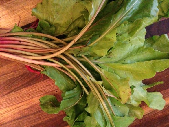 Last week’s CSA share included a handful of beets. I knew they would keep until this week, when I had a hunch I’d be getting some more. Sure enough, Tuesday brought another bunch–along with some of the crispest cucumbers I’ve ever tasted.