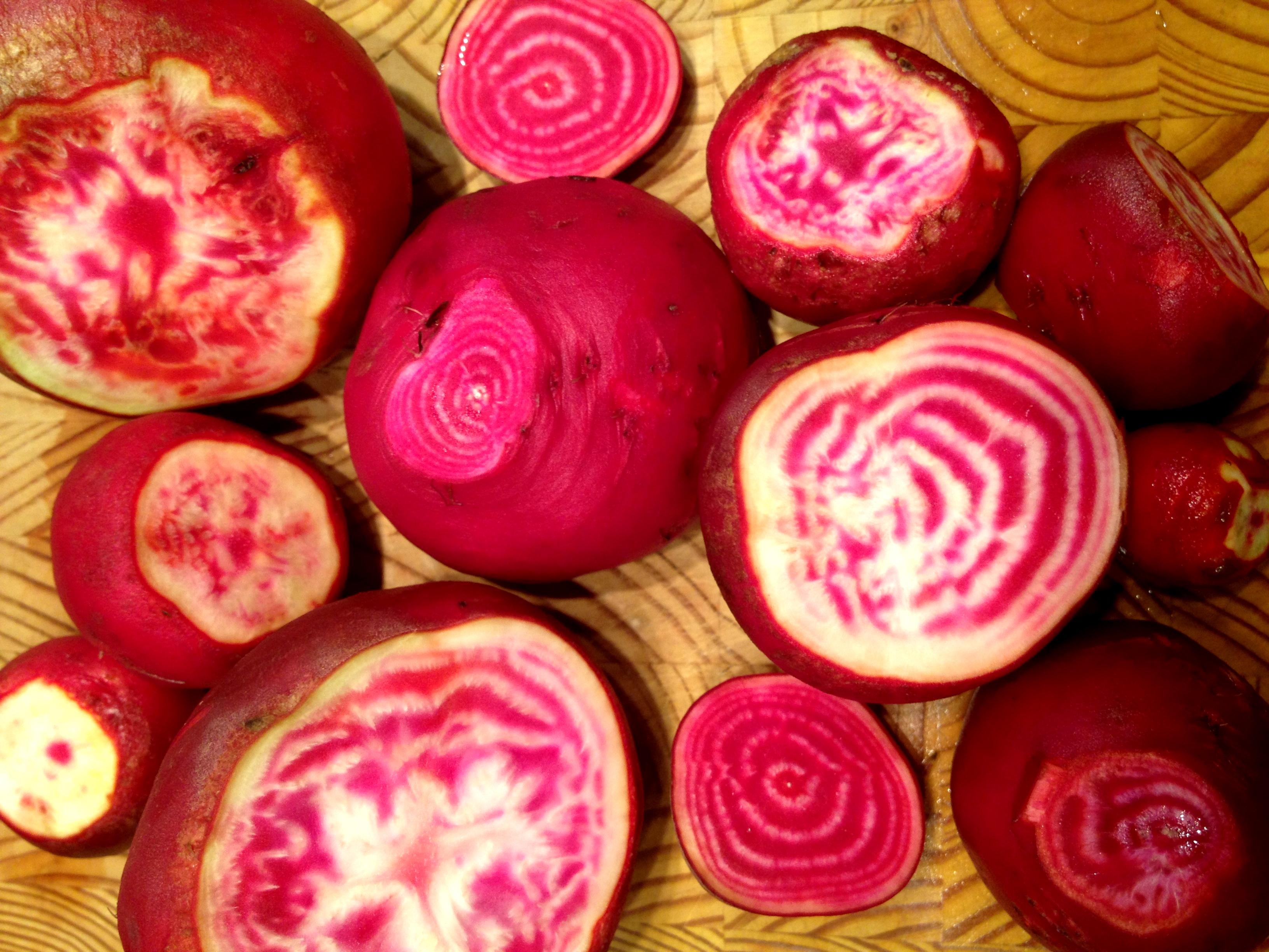 It turned out that these were Chioggia beets, which were breathtakingly beautiful, though the dramatic stripes faded a bit during cooking and, ultimately, made for a borscht the color of Molly Ringwald’s prom dress at the end of Pretty in Pink. (Am I alone in having found that dress rather disappointing after all of the buildup?)