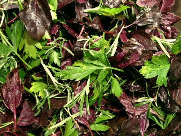 I arrived Friday evening and immediately began assessing the vegetables that had collected in the crisper. There were pattypan squash, corn and bell peppers in abundance. There were fresh herbs in the garden. I wanted a menu that spoke to traditional Rosh Hashanah foods (apples and honey) but also reflected the place (Madison, Wisconsin) and the season (that glorious moment in between summer and fall).