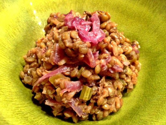 I made a honey lemon dressing for the chicory, toasted hazelnut and roasted delicata squash salad by combining lemon juice, honey, shallots, olive oil, pepper and a little mayonnaise using an immersion blender. (Had this not been a kosher meal, I might have gone with buttermilk instead of mayonnaise.)