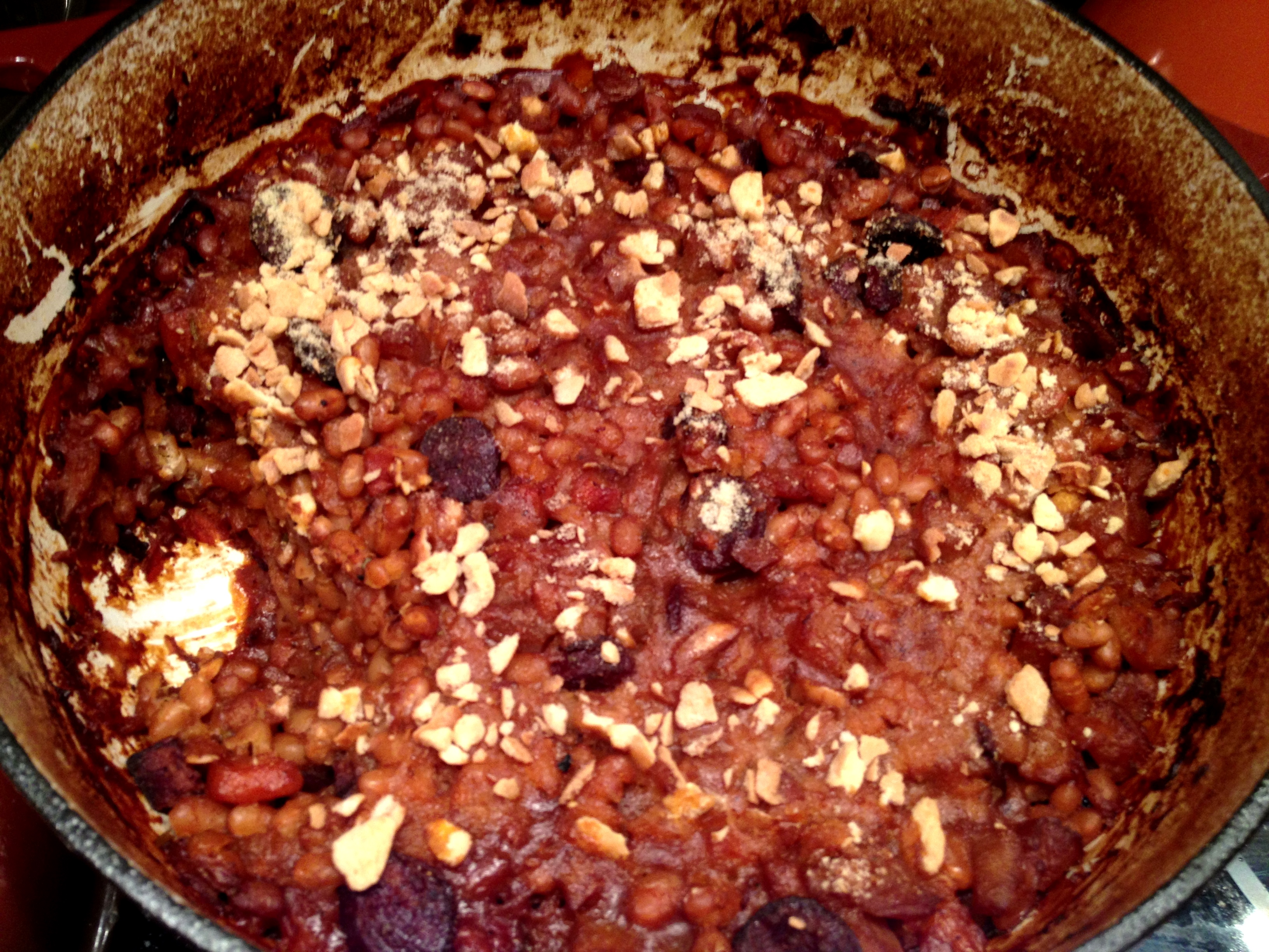 This make a lot of food, as evidenced by this photo of the Dutch oven minus my serving.