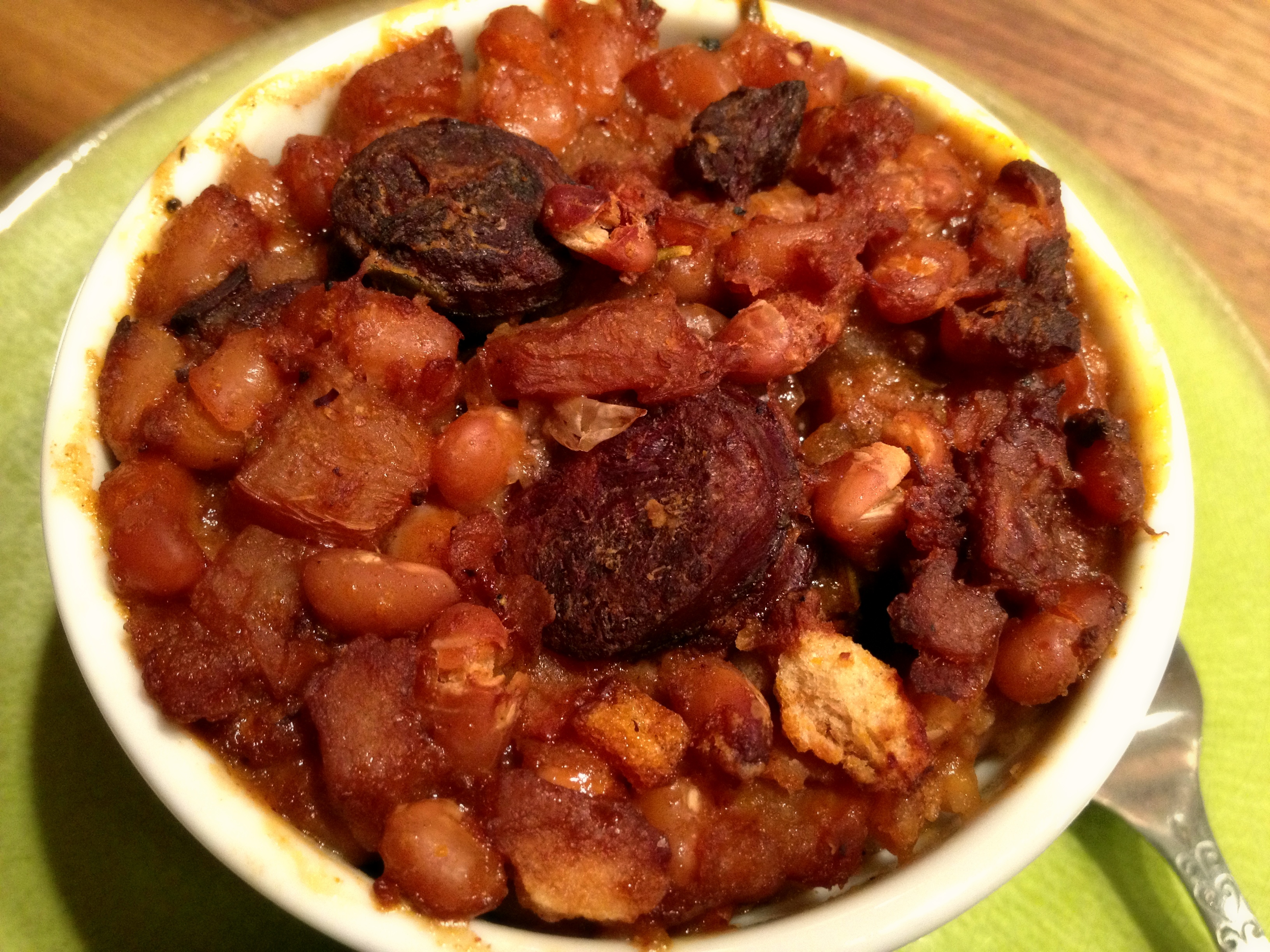 - Pre-soak a pound of dried beans for at least six hours and then drain. The aforementioned navy beans were good, but I could see any kind of white bean working. Use black beans, kidney beans, or pintos and you’re veering into feijoada territory. This would not be a bad thing.