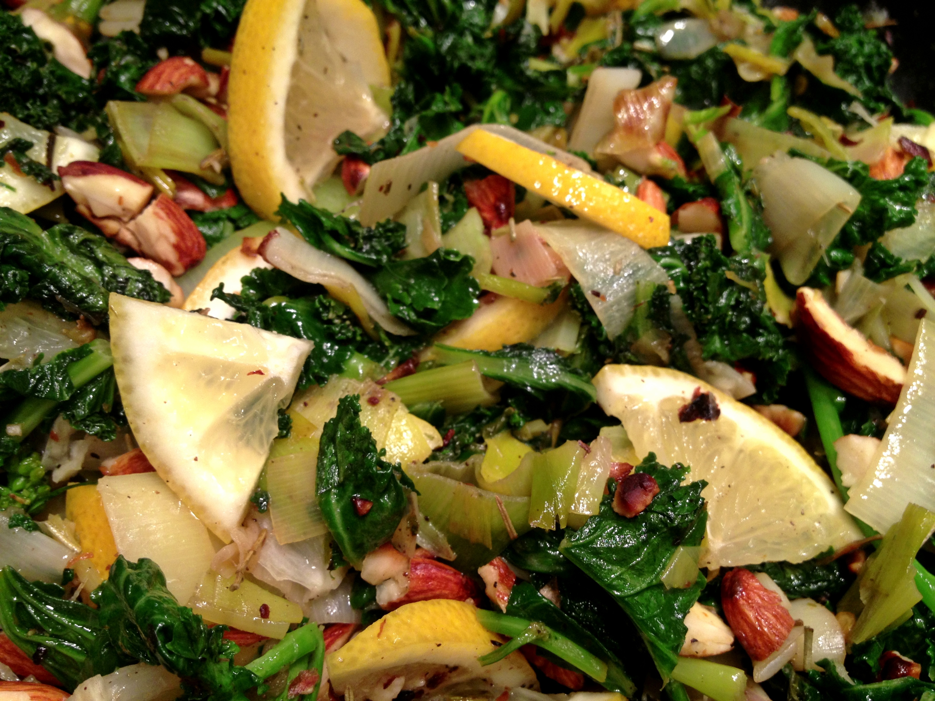 Saturday, 8:00pm – My eyes were starting to go in and out of focus as I struggled through a spreadsheet detailing census data. Assuming it was some combination of fatigue and hunger, I decided it was time for a break. While the oven preheated, I cracked open a beer and set to work making a stuffing of kale, leeks, lemons, fresh rosemary, and toasted almonds. (Shout out to my dear friend Louis for the almond inspiration.)