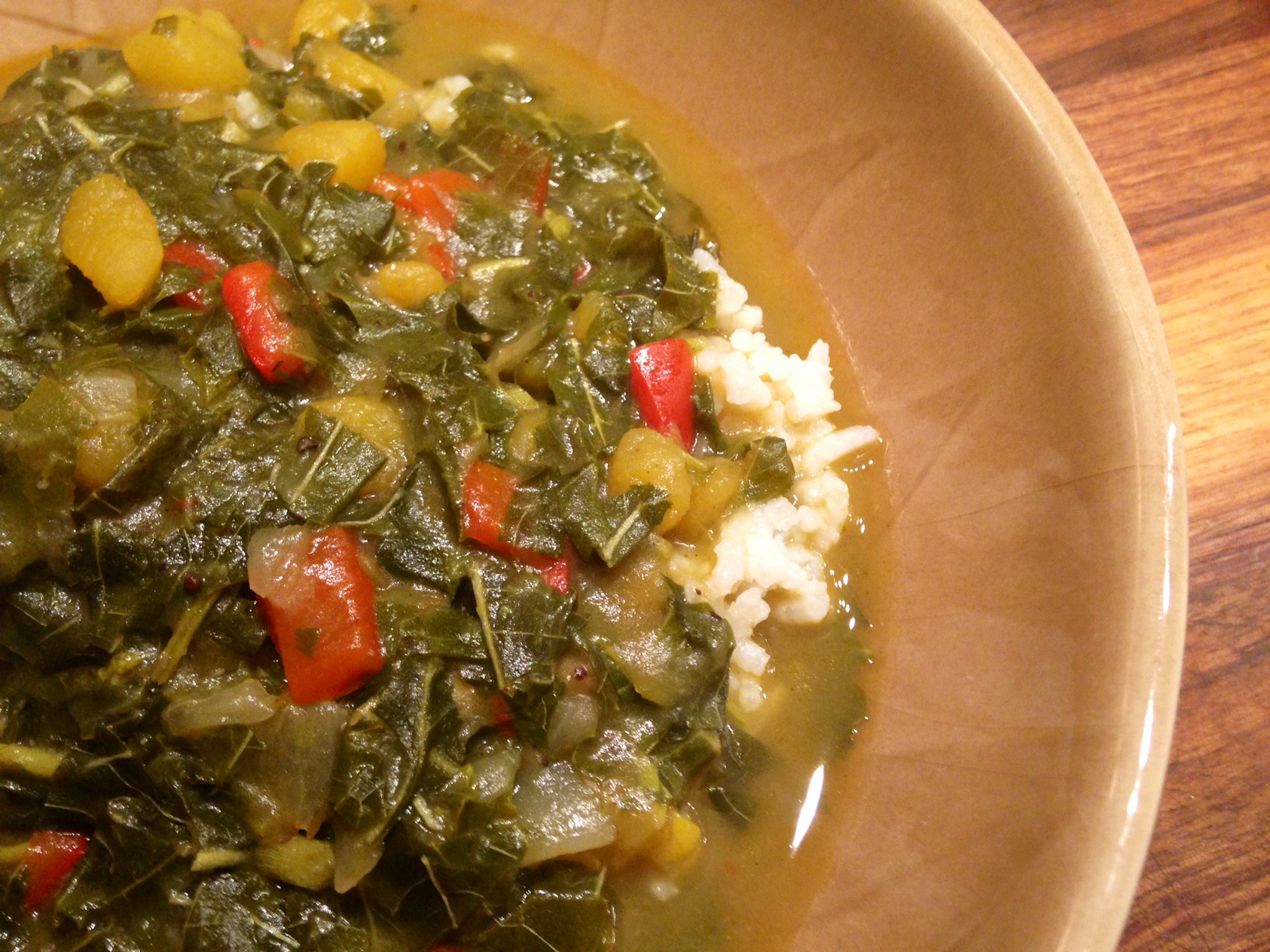 - Raise heat to high, pour in the stock and coconut milk and bring to a boil. Reduce to a simmer and add the squash and Scotch bonnet. Let simmer until squash is very tender, approximately 30 minutes. Add the greens, zest and lime juice. Let simmer for another 30 minutes or longer if you like your greens very tender. Give it a taste. Add salt and pepper to taste. If you could stand more heat, pop the Scotch bonnet open and let simmer for a while longer. Just be sure to fish it out before serving, lest someone get a major surprise.