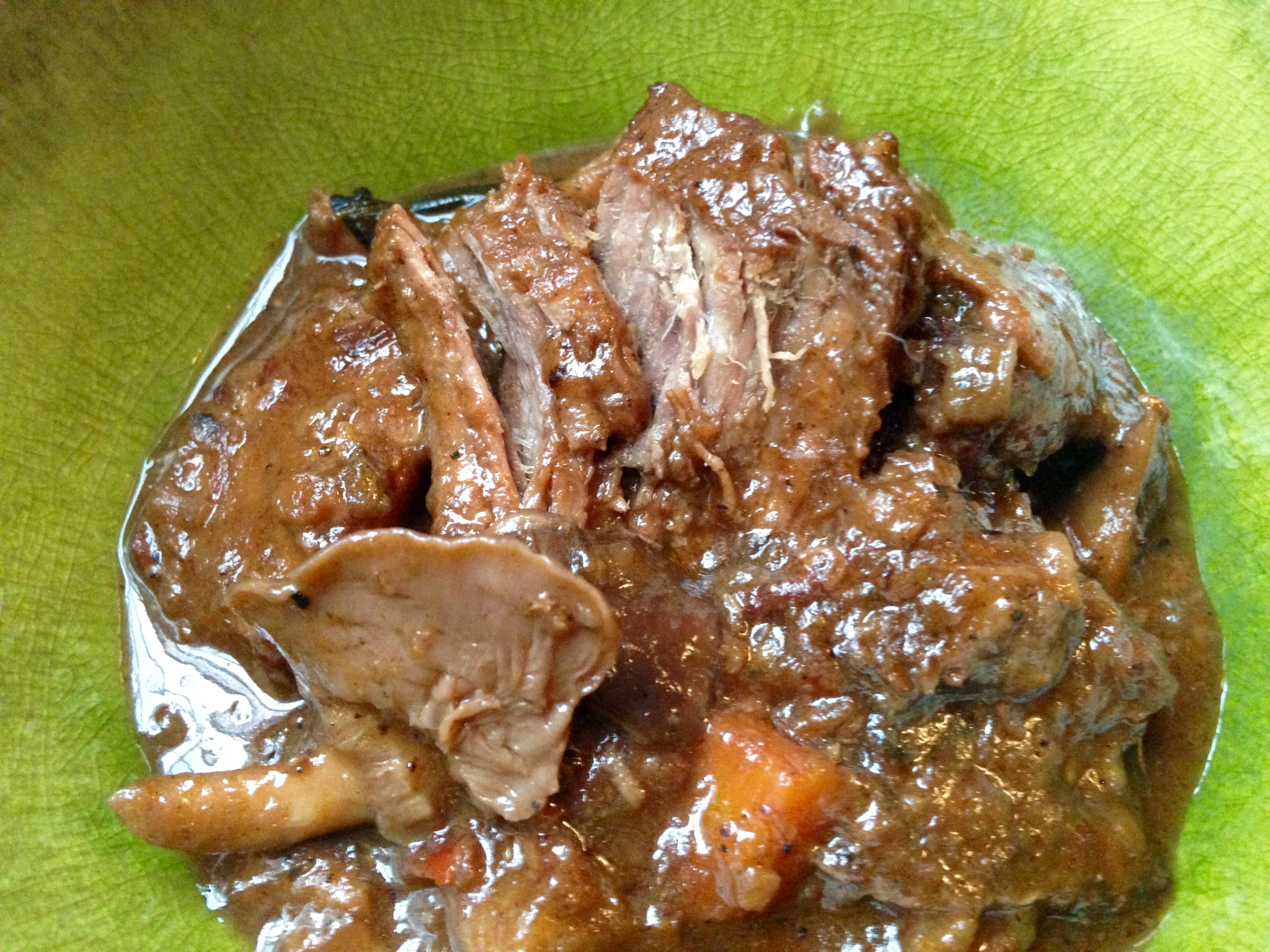 - Some people like to pull the meat out while it is still firm, slice it against the grain, layer it into a pan, cover with the sauce, and continue to cook. This is handy if you’re serving a large crowd or are aiming for something a little more photogenic. Personally, I like to leave the meat whole and continue to simmer until it is pull-apart tender. (Go past this point and you basically have the best beef stew you’ve ever experienced.) A little fresh flat leaf parsley is a nice touch at the end.