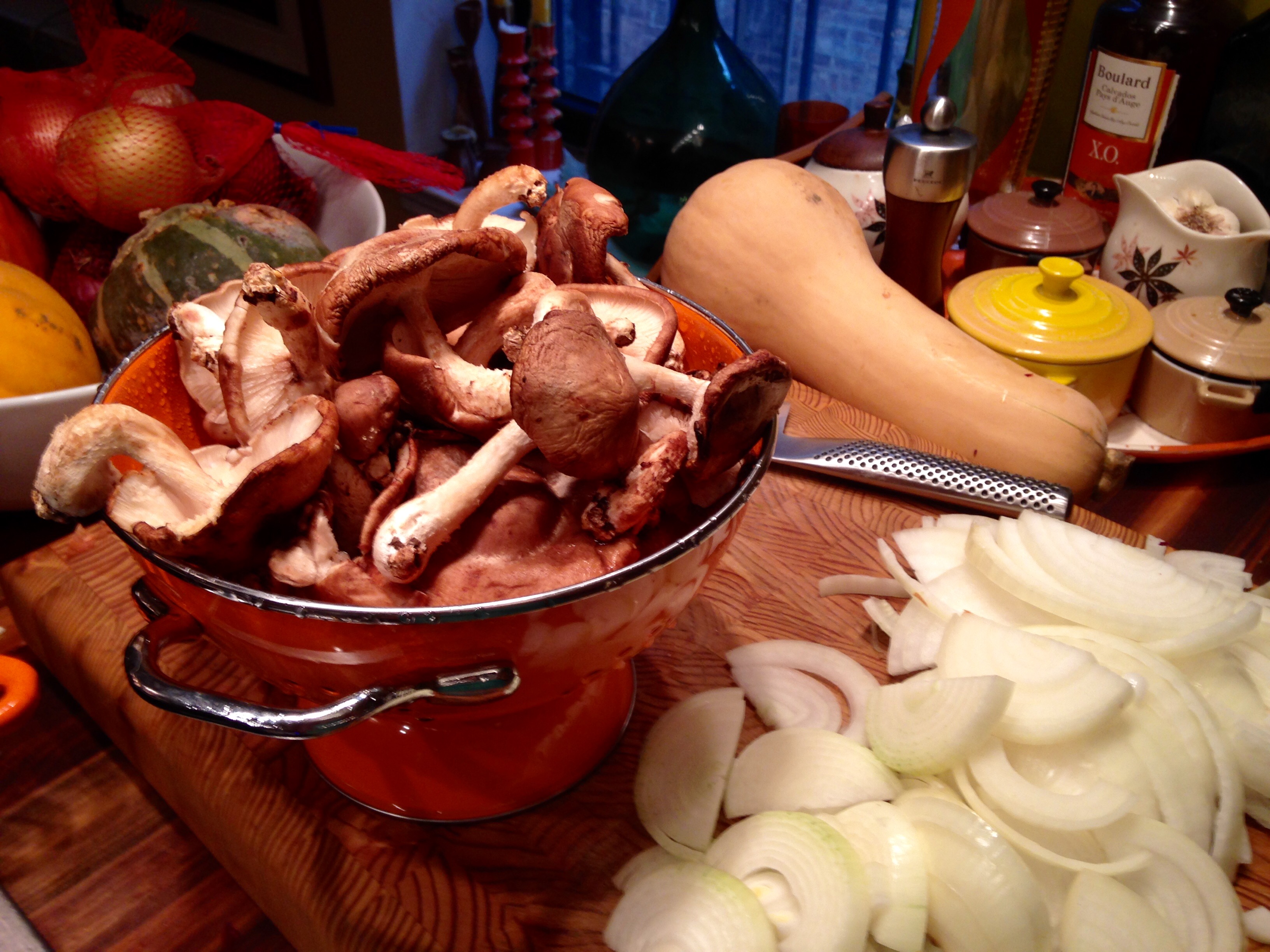 Then I threw on some clothes, grabbed a bag, and headed up the road to the Cold Spring Farmers’ Market. I was eager to see what the Hudson Valley had to offer–and hopeful that I might stumble on a brisket to take the sting out of the previous day’s travel debacle. I picked up purple potatoes, fennel salami, parsley, and canoodling carrots.