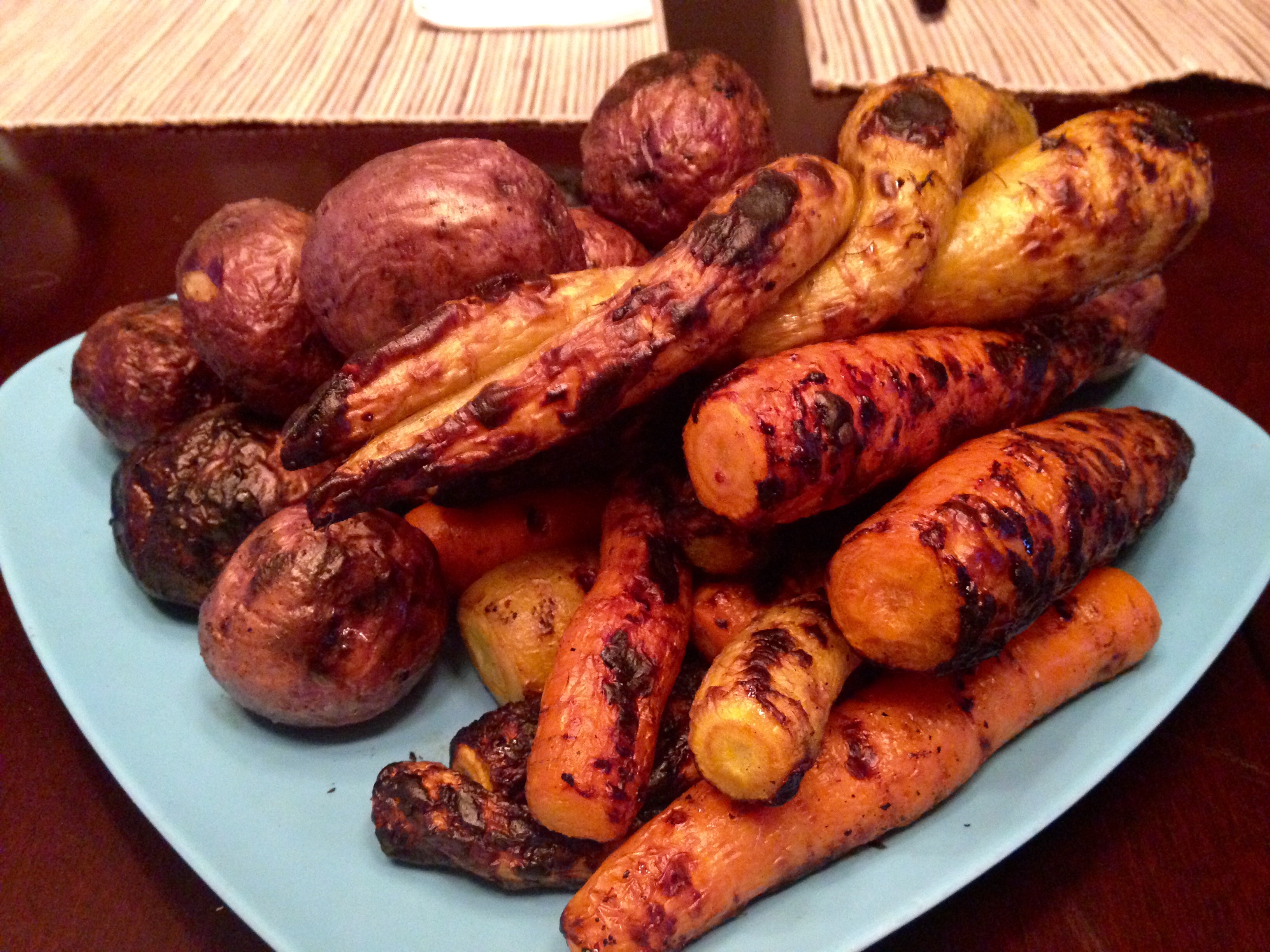 Around 6:00 we sat down to the brisket, accompanied by grilled potatoes and carrots and a kale and pear salad with a maple dijon vinaigrette.